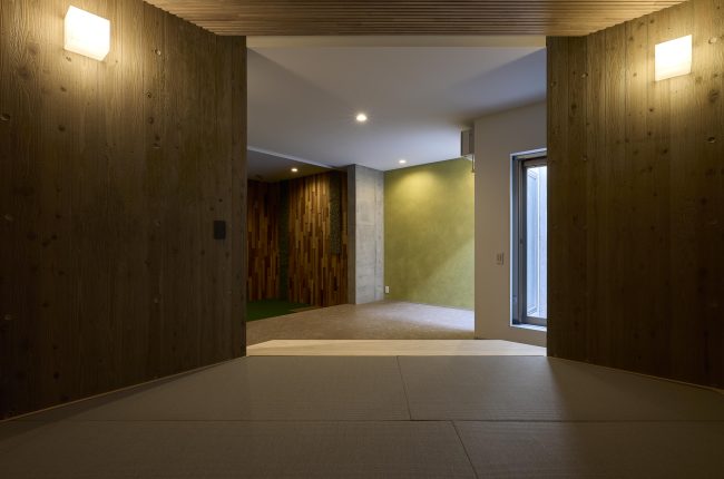 地階にはゴルフシミュレーターを置き、ゴルフ、カラオケ、映画鑑賞等、家族で遊べるフロアとしました。