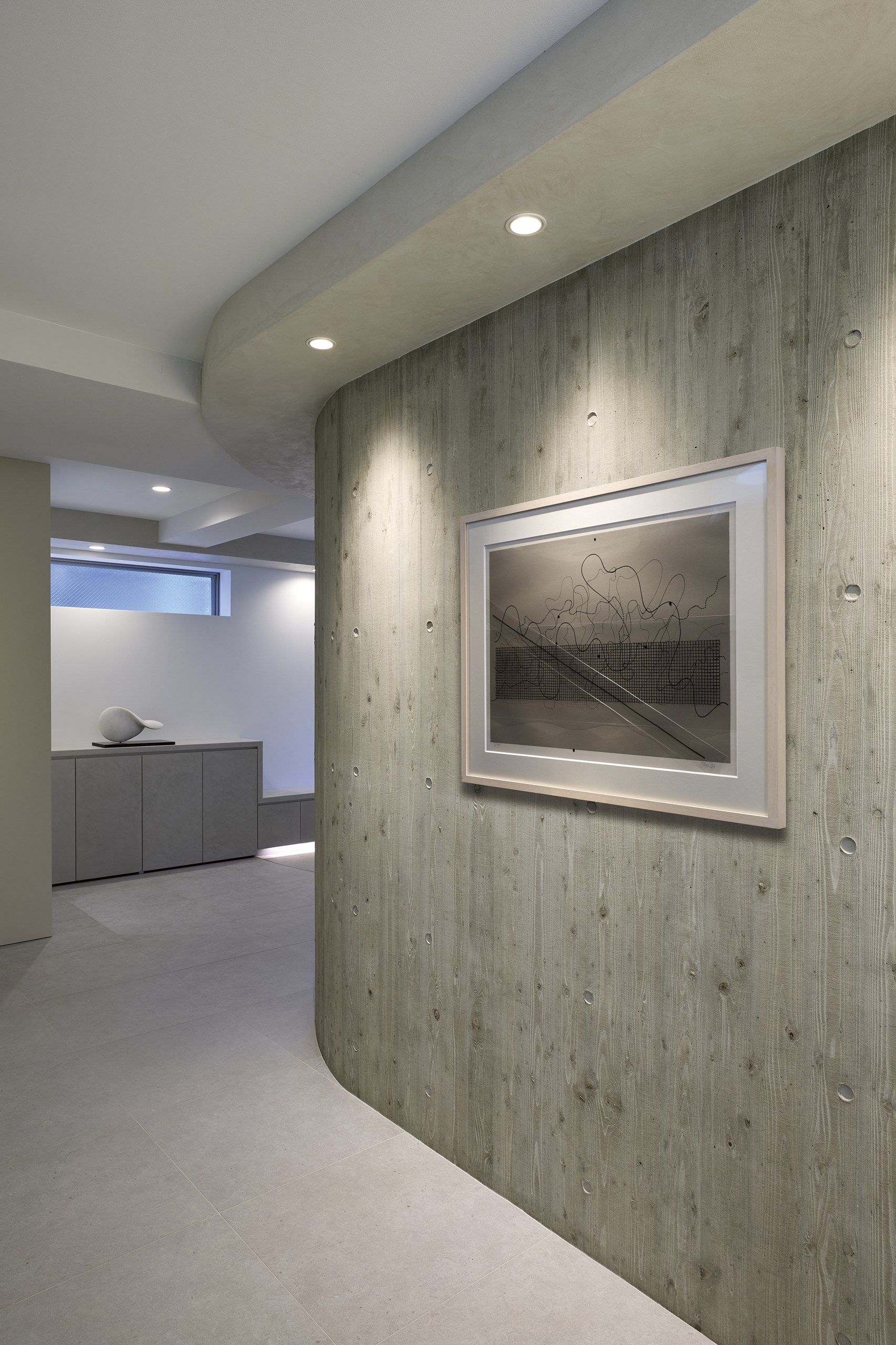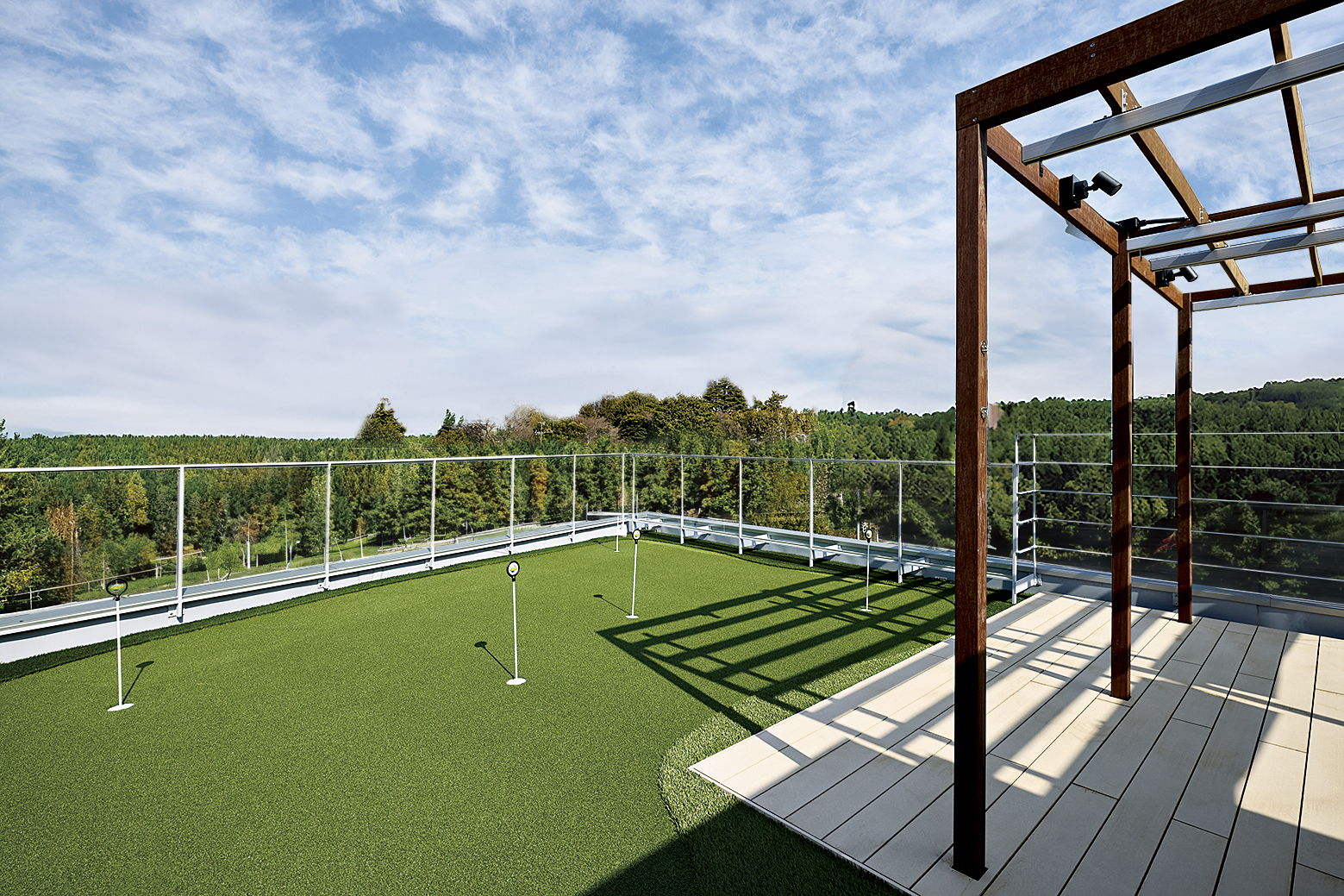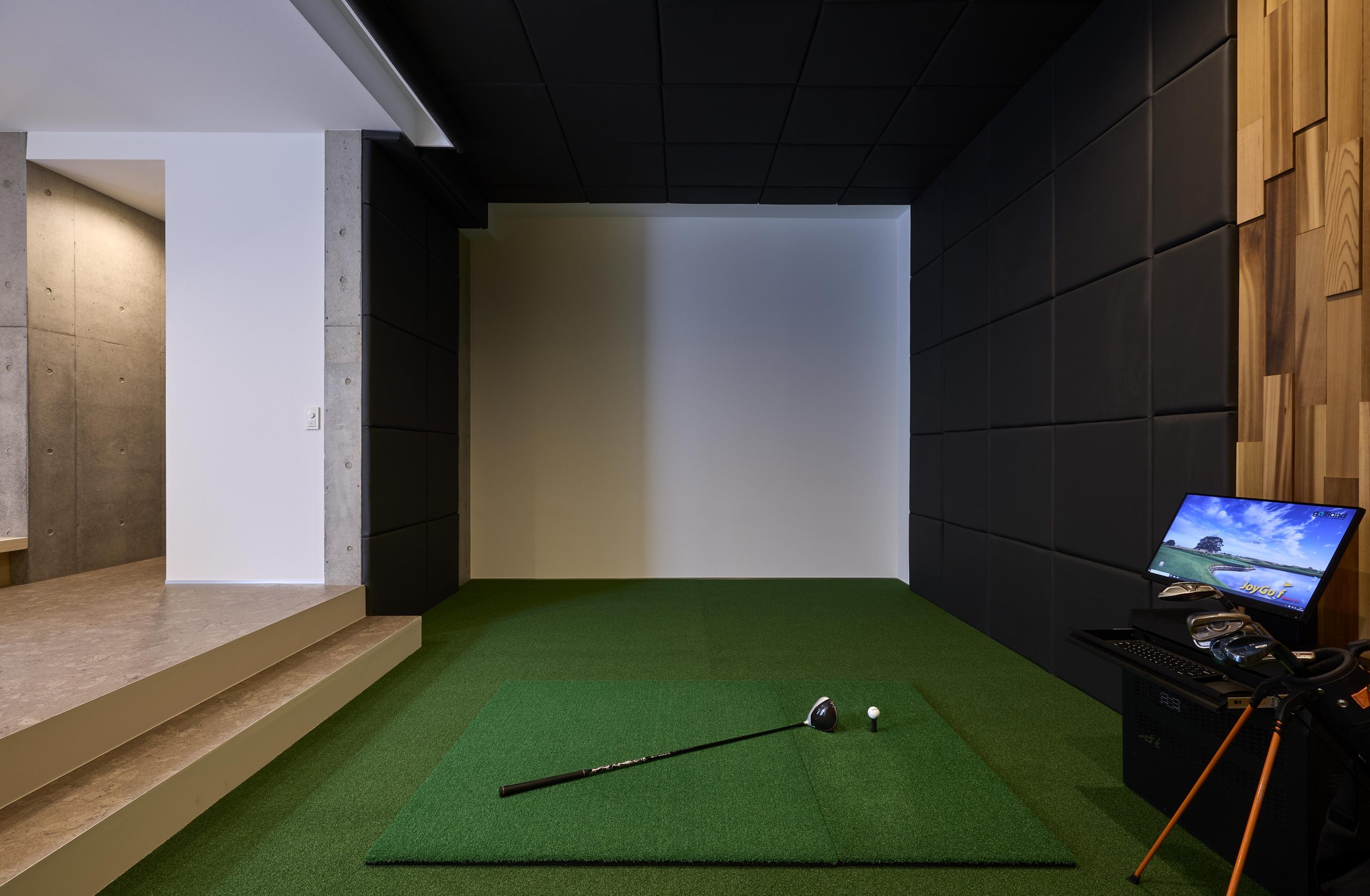 地階にはゴルフシミュレーターを置き、ゴルフ、カラオケ、映画鑑賞等、家族で遊べるフロアとしました。